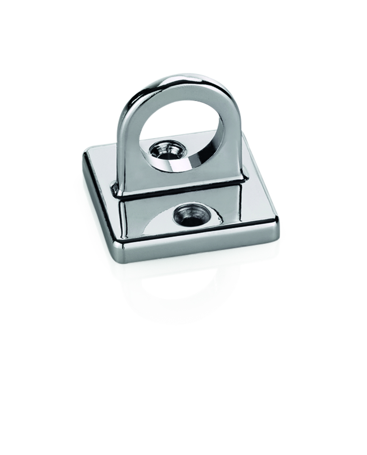 Wandhalter verchromt für Kordeln und Taue Abmessung: 3,8 x 5 cm wird komplett mit 2 Schrauben und Dübeln geliefert.